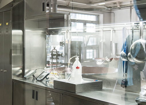 Ognuna delle due forme viene avvolta in un telo di lino ed estratta dalla caldaia grazie al sollevafagotti automatico, installato sin dal 1990, che scorre lungo i binari per depositare poi le forme sui tavoli “spersori”. Questa è una delle numerose innovazioni tecnologiche introdotte nel caseificio allo scopo di alleggerire il peso del lavoro manuale in produzione.