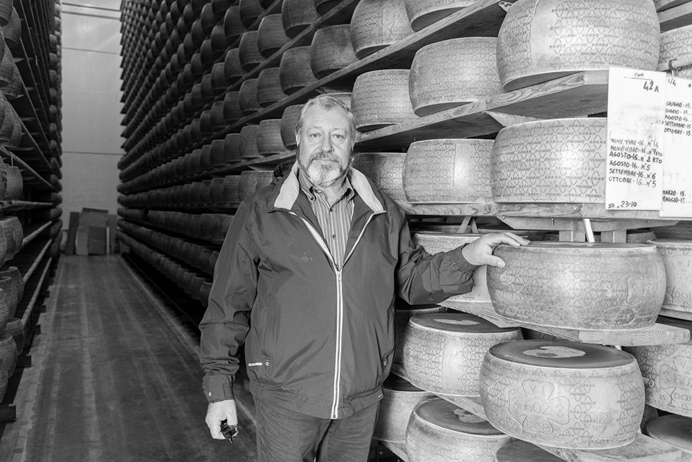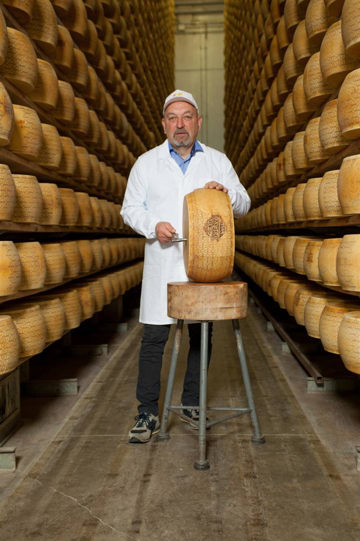 «Il Grana Padano – aggiunge Dalla Rosa – viene ovviamente prodotto nel rispetto più rigoroso del disciplinare di produzione. Si continuano a ripetere i gesti della tradizione utilizzando, ad esempio, lo spino per rompere la cagliata o la pala di legno per recuperare la massa caseosa e tagliarla in due parti uguali, in modo da dare origine alle due “forme gemelle”».