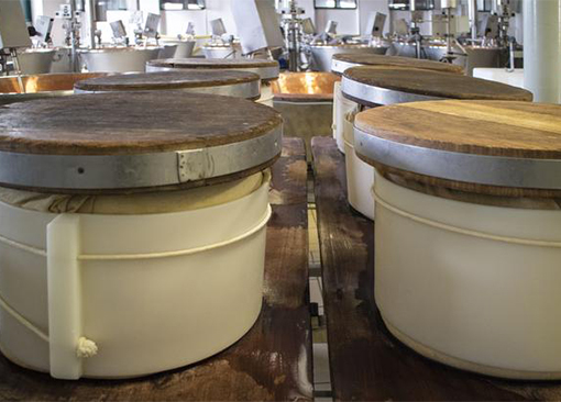 Il latte appena munto viene trasportato in caseificio dove nel giro di 24 ore viene lavorato e trasformato in Grana Padano DOP, Ricotta e Burro.