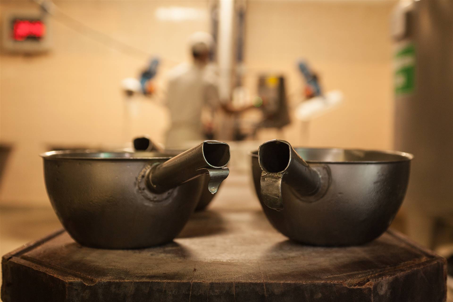«L’innovazione tecnologica – spiega Marco – ha fatto ingresso in azienda solo per sgravare la manodopera in alcune mansioni produttive. Ci siamo, ad esempio, dotati di un affioratore automatico da 400 quintali per la parziale decrematura del latte, che ci consente maggiore precisione e controllo del latte e distribuisce in modo automatico la materia prima in caldaia. Abbiamo introdotto, quindi, alcune tecnologie solo per migliorare la gestione del latte nelle caldaie come, ad esempio, la curva di acidificazione del siero-innesto, ma la lavorazione resta, come sempre, completamente artigianale. Abbiamo la macchina “scalonatrice” che solleva le forme di Grana Padano sulle scalere del magazzino di stagionatura».