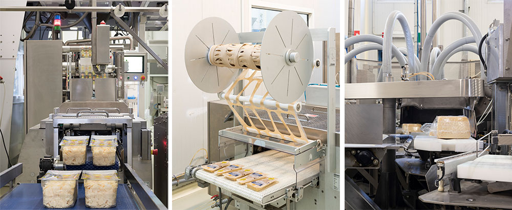 L’impianto di confezionamento e per sigillare i diversi formati di Grana Padano.