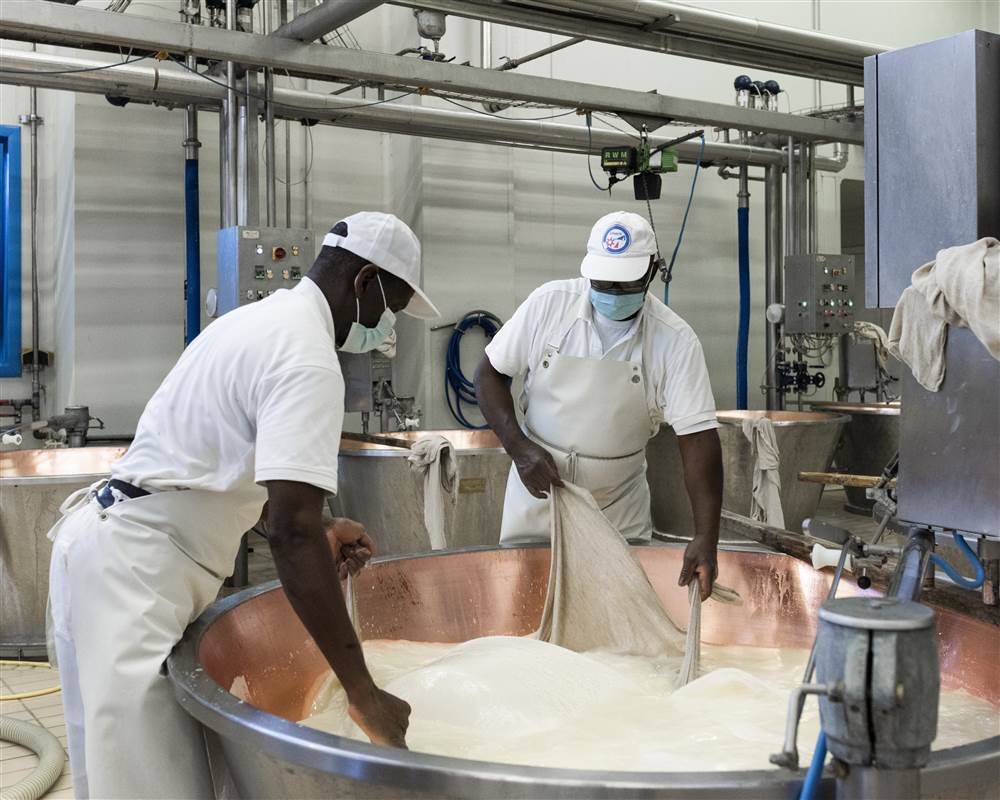 Il caseificio per la produzione di Grana Padano è partito inizialmente con tre caldaie che facevano due lavorazioni al giorno, una al mattino con il latte raccolto in bidoni la sera precedente, e una nel pomeriggio con il latte raccolto la mattina. La fase di affioramento avveniva in bacinelle. Negli anni ’90 del secolo scorso sono state introdotte altre 5 caldaie ed è stata realizzata una nuova sala climatizzata per il latte in affioramento. Negli anni duemila il caseificio è stato nuovamente rinnovato: nella sala di lavorazione sono state aggiunte altre 12 caldaie che sono arrivate complessivamente a 20, sono stati implementati anche gli affioratori a silos e sono state automatizzate alcune operazioni per consentire di alleggerire dal trasporto di pesi il personale tecnico, consentendo di coniugare tradizione ed innovazione. Resta ovviamente tutta manuale, così come prescrive il disciplinare di produzione, la lavorazione del latte in caldaia per la formazione della cagliata che viene poi estratta e tagliata in due forme gemelle. Il tank di raccolta del latte è posizionato all’esterno del caseificio.