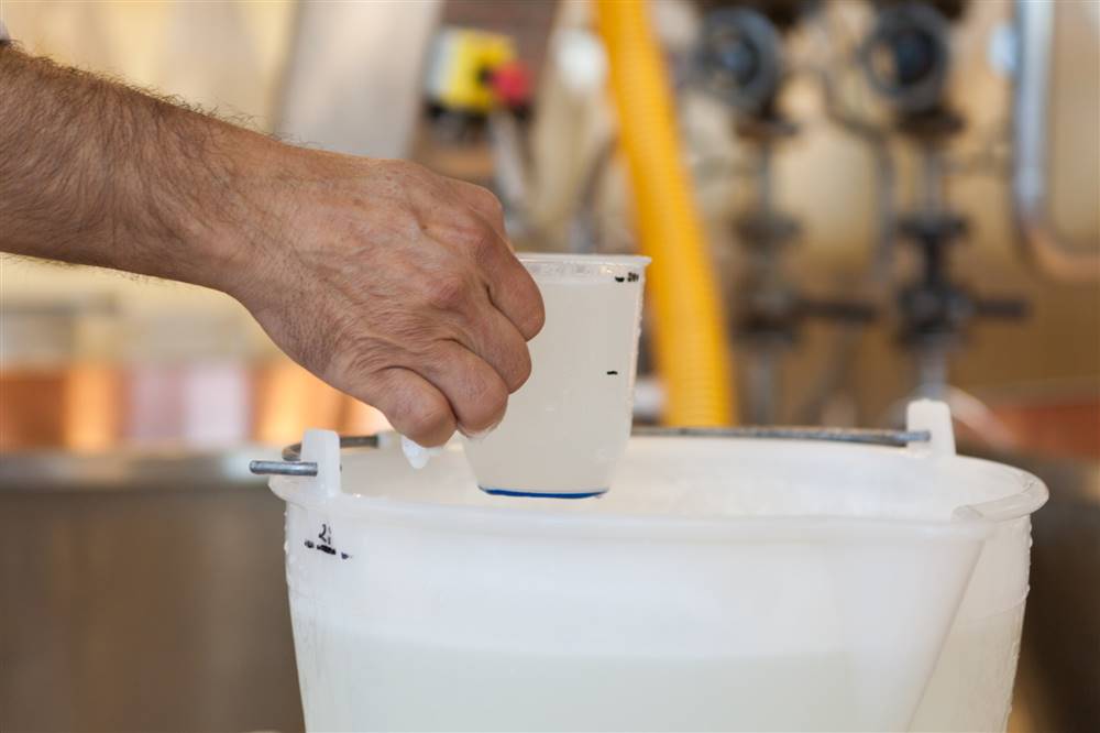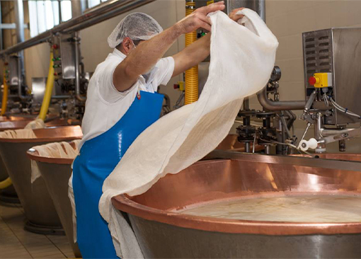 «Abbiamo automatizzato la parte – spiega Cerato entrando nel dettaglio del progetto di rinnovamento dello stabilimento di Bassano del Grappa – che riguarda il siero-innesto con l’impiego di fermentiere automatiche per fare in modo che il processo di maturazione venga controllato elettronicamente dal sistema di controllo del caseificio. Stiamo rinnovando, anche in termini di consumi, l’impianto di lavaggio e depurazione». Tutti gli interventi hanno l’obiettivo di rendere il lavoro standardizzato e più agevole per gli operatori. «Siamo intervenuti – sottolinea Cerato – per dotare la caldaia di nuovi agitatori, per installare la linea portafagotti in modo da alleggerire il lavoro manuale in caseificio e oggi anche sulla fase di spinatura, ossia la rottura della cagliata, che viene eseguita in modo meccanizzato». Ovviamente viene sempre condotta manualmente, nel rispetto più rigoroso del disciplinare di produzione, la parte iniziale di lavorazione del latte in caldaia che è la più difficile del processo di produzione di Grana Padano, quella in cui il maestro casaro può effettivamente dimostrare tutte le sue competenze e abilità in materia.