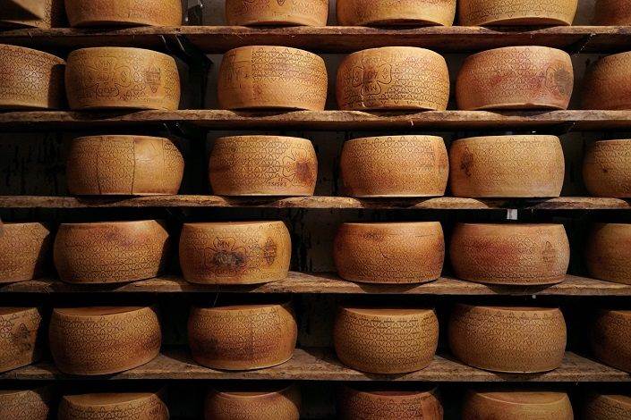 Qui si producono con estrema cura 6 forme di Grana Padano DOP al giorno e lo si fa utilizzando tecniche e attrezzature ancora completamente artigianali: l’affioramento del latte per esempio, avviene ancora nelle bacinelle e la messa in forma del formaggio avviene ancora in fascere di legno.