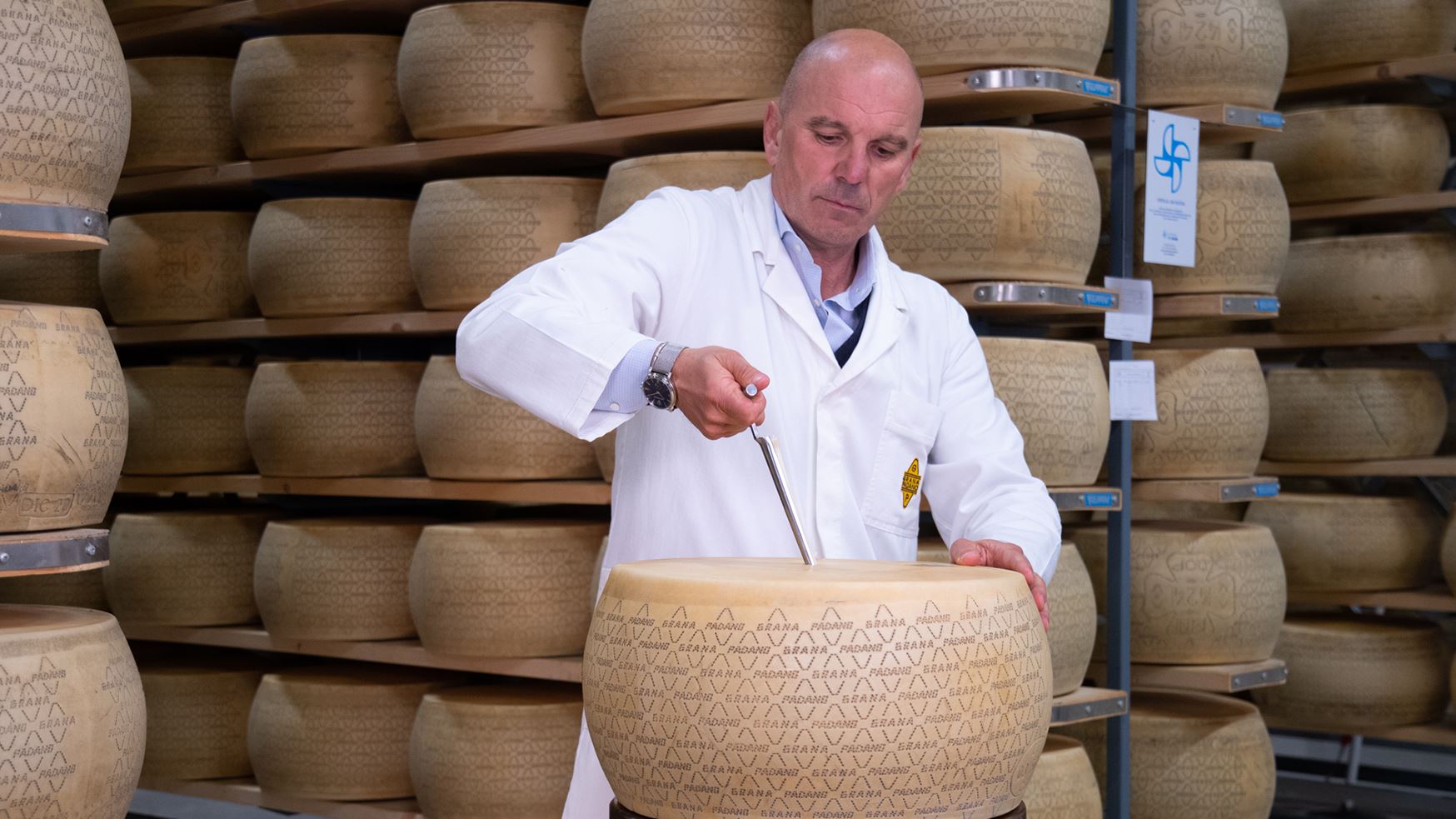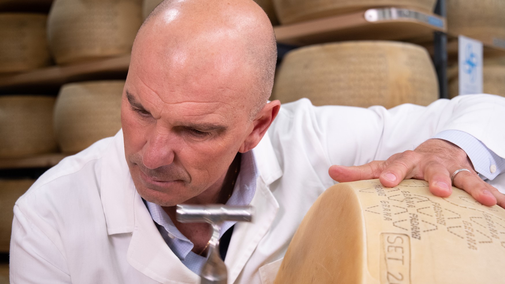 Il primo esame, un esperto lo fa entrando nel magazzino di stagionatura, controllando che la temperatura sia tra i 15° e i 22° C e che l’umidità sia compresa tra l’80 e il 90 per cento.