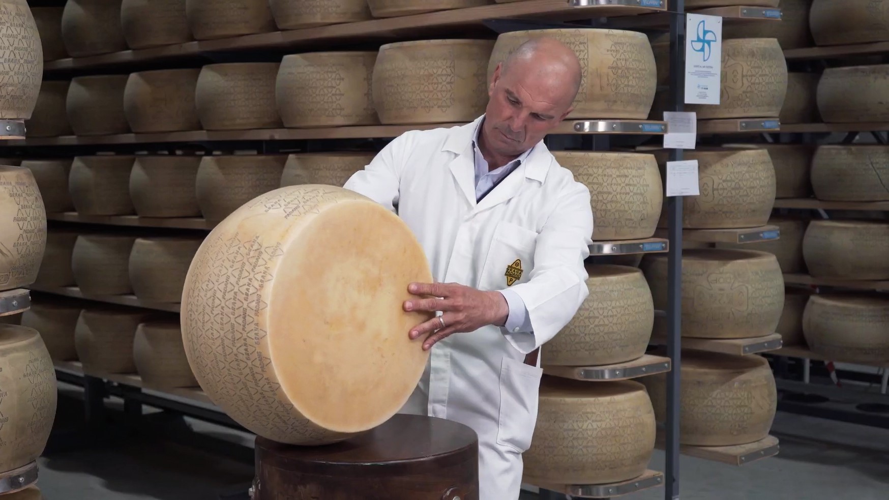 Gli esperti quindi ricontrollano le forme che avevano marchiato “Grana Padano” dopo i 9 mesi di stagionatura, ed effettuano un nuovo test approfondito per poter apporre il marchio “Riserva – Oltre 20 mesi”.