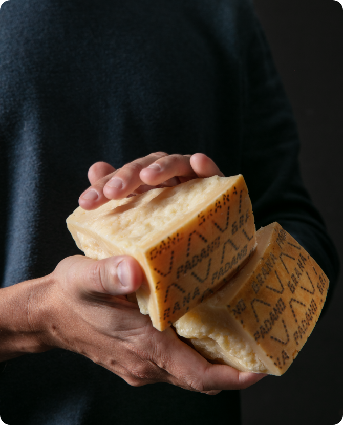 Il formaggio Grana Padano DOP è prodotto con pochi ma eccezionali ingredienti: latte, sale, caglio e lisozima.