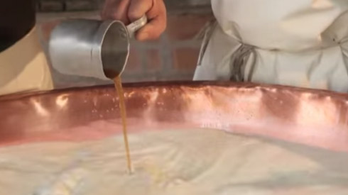 (Foto 4) – Lavorazione del “Grana”: Amedeo Farina pulisce la caldaia di rame