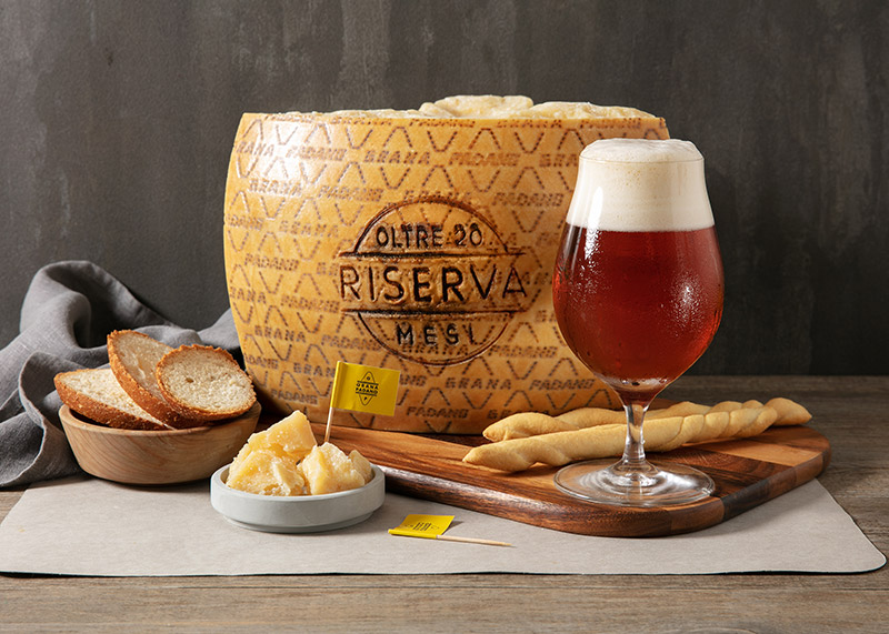 La robustezza materiale e gustolfattiva di questo stile (nella versione di cui si sta parlando) si coniuga felicemente con il Grana Padano Riserva Oltre 20 mesi. Nello specifico, l’alcolicità (tanto più se significativa), l’acidità e la carbonazione agiscono in sinergia sulla componente grassa; le morbidezze palatali operano in bilanciamento sulle sapidità. Le aromaticità concentrate, da disidratazione, vanno in aggiunta (quasi “in guarnitura”) rispetto alle inclinazioni odorose del formaggio. Un connubio d’intensa armonia.