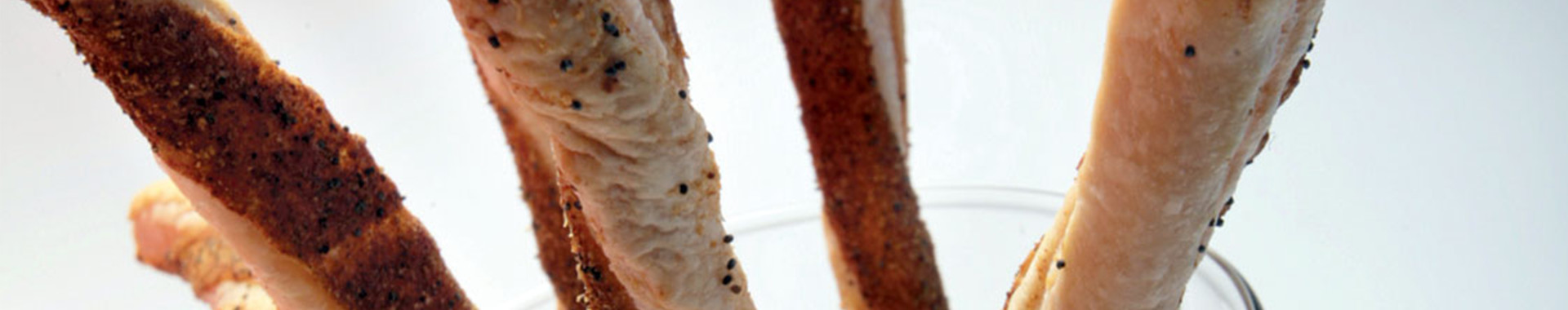 La croccantezza e la friabilità della sfoglia vengono esaltate al tatto: prendete questi grissini con i polpastrelli e spezzateli con un colpo secco. Ecco che il cibo comincia a parlarvi, partendo da una piacevole sensazione tattile, finendo nella vostra bocca, sciogliendosi in un croccante piacere addolcito dal sapore del Grana Padano Riserva.
