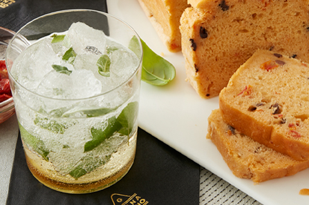 Prima di sfornarlo, lasciatelo intiepidire. Servite guarnendo con foglie di basilico e accompagnando con un bicchiere di pestato analcolico alla salvia.