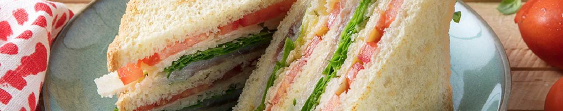 Una volta composti i club sandwich, tagliateli a metà lungo la diagonale in modo da ottenere due triangoli. Fermateli con uno spiedino e servite subito.