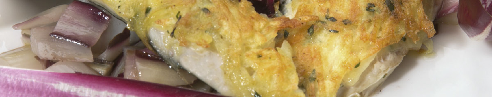 Filetto di sgombro in crosta di patate e Grana Padano con radicchio in agrodolce