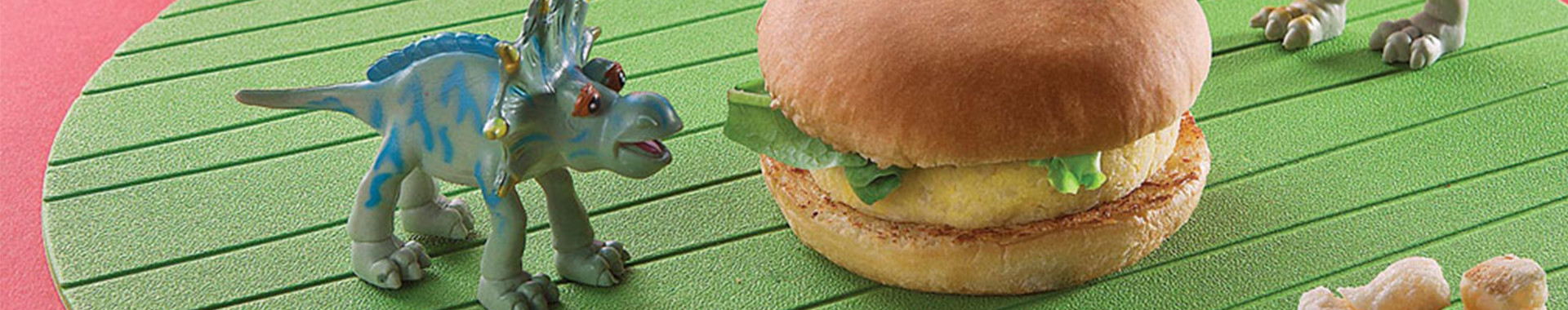 Tagliare il pane a metà fallo tostare sulla griglia e servirlo con gli hamburger di ceci, le insalatine novelle e le croste soffiate.