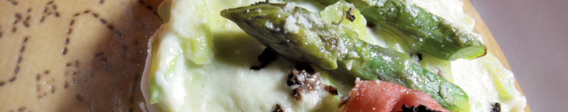 Una rivisitazione moderna della tradizionale lasagna della nonna: tartufi, prosciutto e asparagi, ingredienti dalla forte personalità, si fondono senza scontrarsi, per esplodere in tutta la loro potenza in bocca e donarci un piacere prolungato e intenso. Il Grana Padano DOP completa con la sua morbidezza un quadro d’autore di arte astratta.