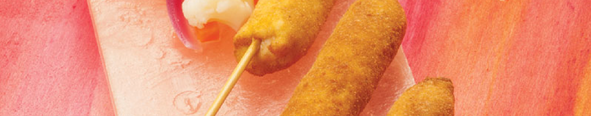 Lasciare riposare in frigorifero il composto per 30 minuti, metterlo in un sacchetto da pasticceria, inserire uno spiedino e formare dei cilindri di pollo. Mettere gli spiedini in congelatore per 20 minuti, passarli nel latte, nel pane grattugiato, disporli su una placca e cuocerli in forno a 170°C per 20 minuti. Servire gli spiedini di pollo con la giardiniera di verdure.