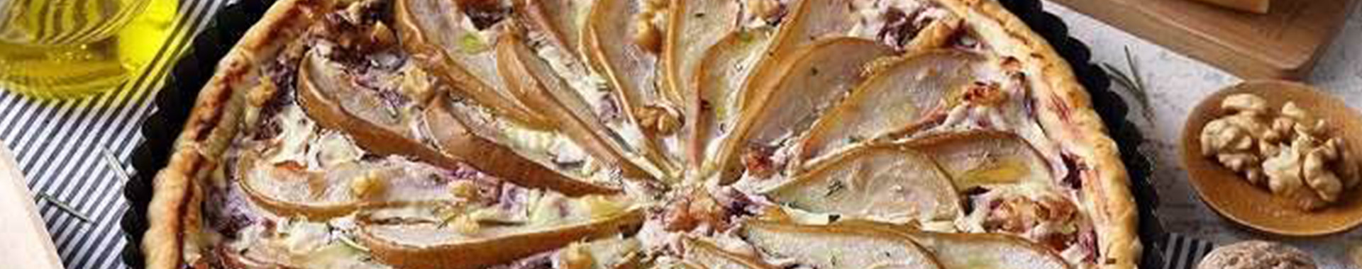Aggiungete le pere tagliate a fettine, cospargete con Grana Padano grattugiato, gherigli di noci, un filo di olio extravergine di oliva e fate cuocere in forno preriscaldato a 180°C per 25-30 minuti. Servite la torta salata tiepida.