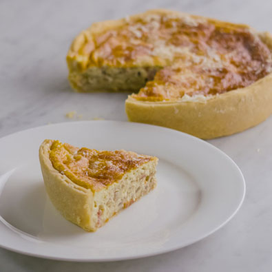 Foderate una teglia rotonda con la pasta sfoglia bucherellando la superficie con una forchetta, versateci il composto di ricotta e stendetelo con un cucchiaio.