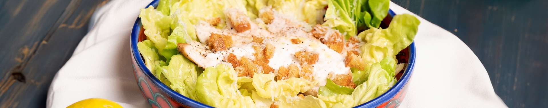 Disporre l’insalata sulla base del piatto e condire con un filo di olio e un pizzico di sale. Tagliare il pollo a fettine e aggiungere sopra l’insalata. Condire con la salsa di yogurt e Grana Padano DOP. Guarnire con un pizzico di pepe, i crostini di pane dorati e un filo di olio.