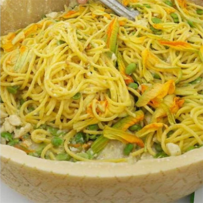 Chiunque sia stato nella capitale italiana almeno una volta non può non aver assaggiato questo delizioso piatto tipico della cucina locale. La cacio e pepe ricetta originale prevede solo tre ingredienti, ma col tempo ne sono nate molte varianti e ora ciascuno può scegliere la propria preferita, come questi tonnarelli cacio e pepe con Grana Padano, fave e fiori di zucchine.