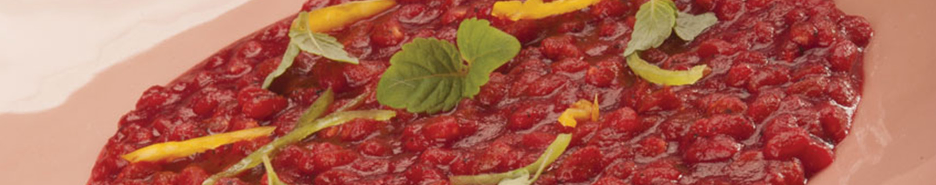 Farro mantecato alla barbabietola e Grana Padano Riserva, aglio, olio e peperoncino