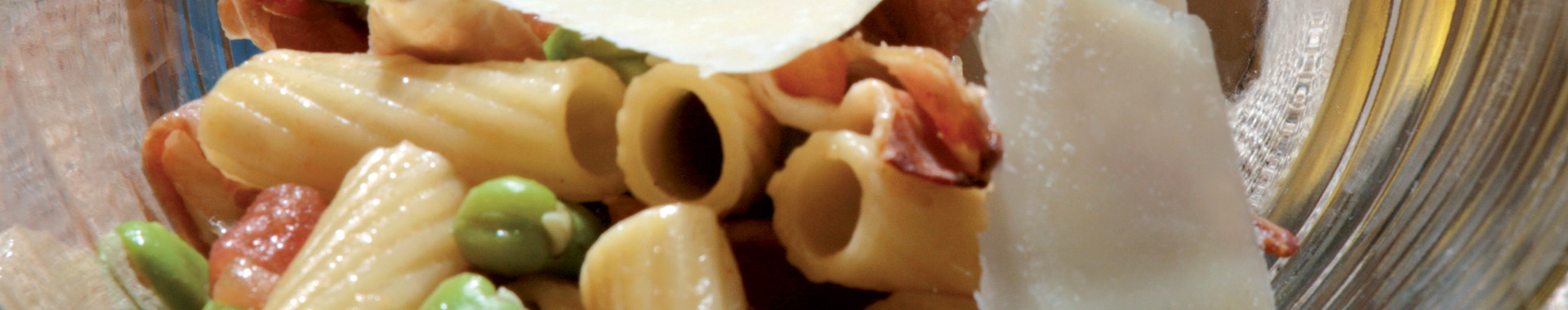 Maccheroncini alle fave, guanciale croccante e Grana Padano