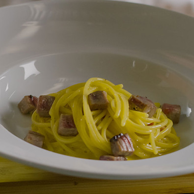 Cuocere la pasta e saltarla poi in padella con il condimento precedentemente realizzato.