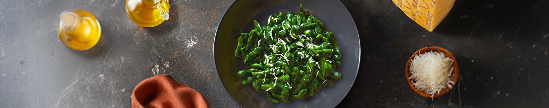 Mescolare farina, uova, spinaci, sale e noce moscata. Aggiungere l’acqua fino a ottenere un impasto morbido.