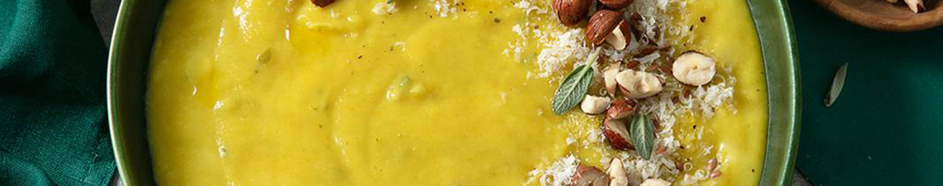 Vellutata di cavolfiore e curcuma con nocciole, salvia e Grana Padano Riserva
