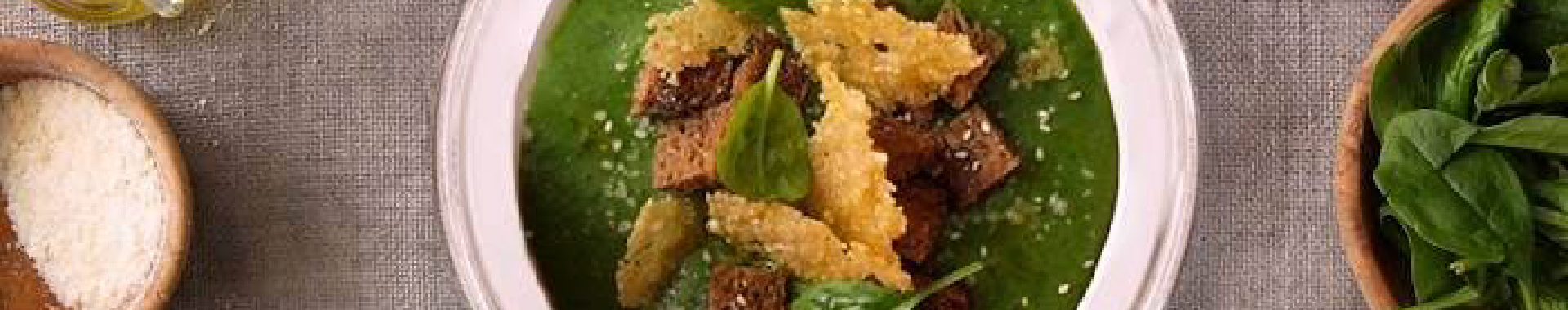 Vellutata di spinaci, patate e cialde di Grana Padano