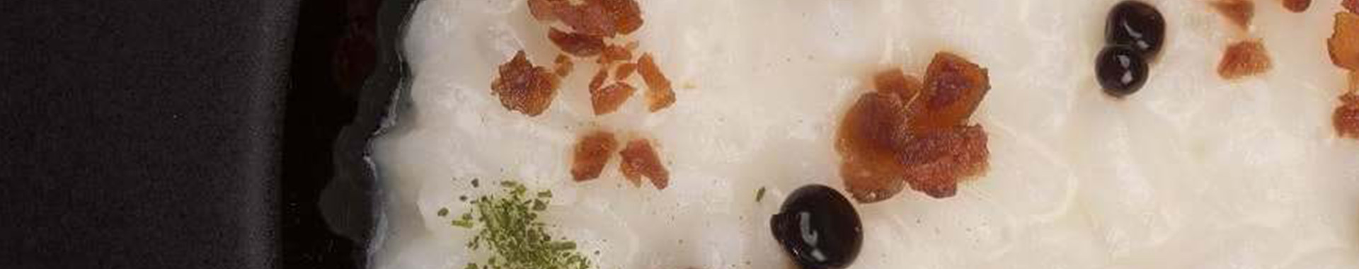 Risotto all’acqua di Grana Padano 27 mesi con gocce di aceto balsamico e prosciutto in polvere