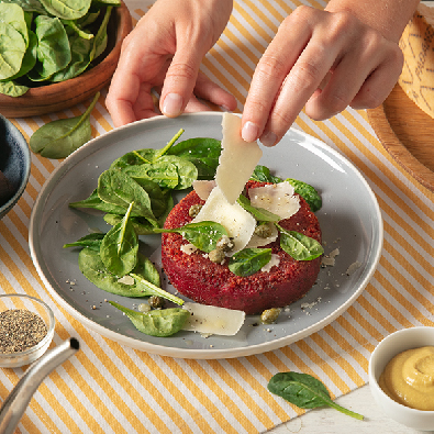 Dal composto ricavare delle palline e schiacciarle leggermente per ottenere la classica forma a burger. Cuocere i burger da ambo i lati in una padella senza l’aggiunta di olio.